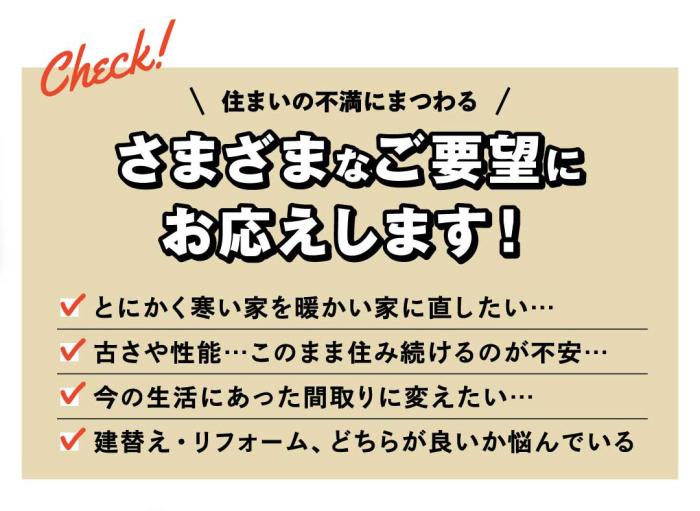 ※住みながらのリフォームは承っておりません。仮住まいをお願いしています。